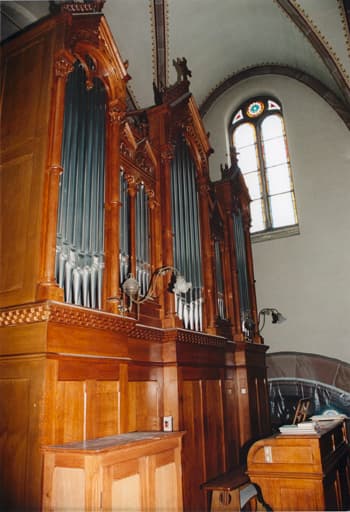 Orgue, par M. Et J. Rinckenbach, 1901. Vue d'ensemble du buffet et de la console.