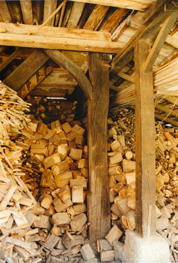 Poteaux en chêne du pigeonnier. Vue de détail.