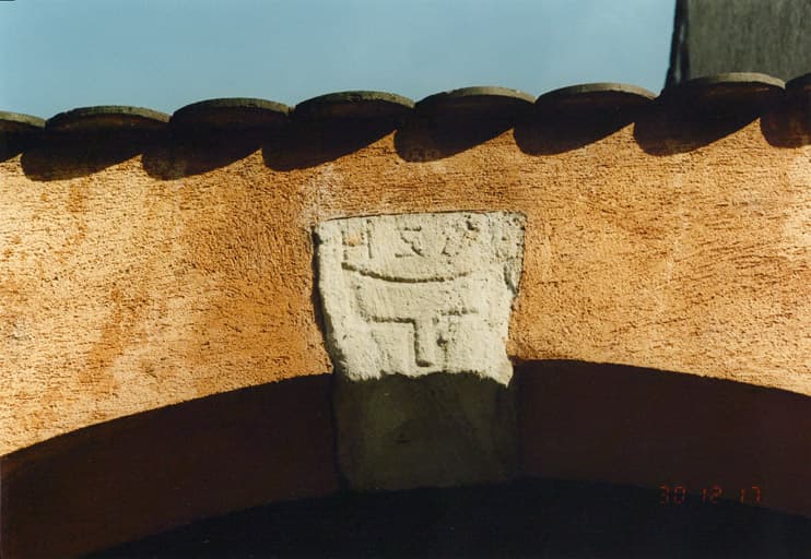 Vue de détail d'un claveau de la porte cochère.
