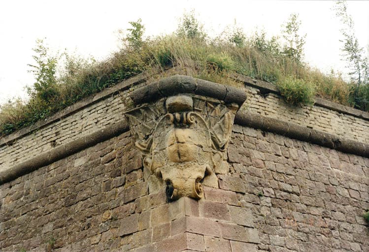 Fossé nord. Vue de détail d'une console qui devait supporter une guérite de guetteur. Partie supérieure refaite en briques.
