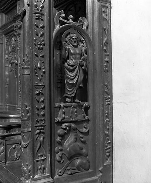 8 bas-reliefs, 6 statues et 8 groupes sculptés des jouées des stalles