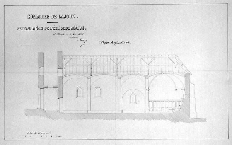 Commune de Lajoux. Restauration de l'église de Mijoux [coupe longitudinale de l'église].