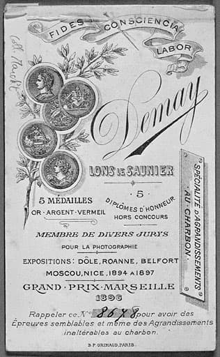 Verso du portrait de Nicolas Gauthier : en-tête du photographe L. Demay.