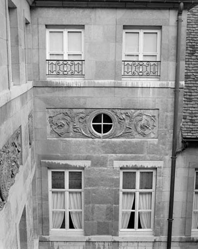 Façade sur cour : détail des décors de l'avant-corps droit.