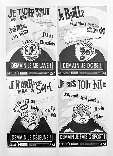 Affich'H Hygiène de l'Ecolier : exemple d'affiches réalisées à l'atelier Patrimoine en 1998.