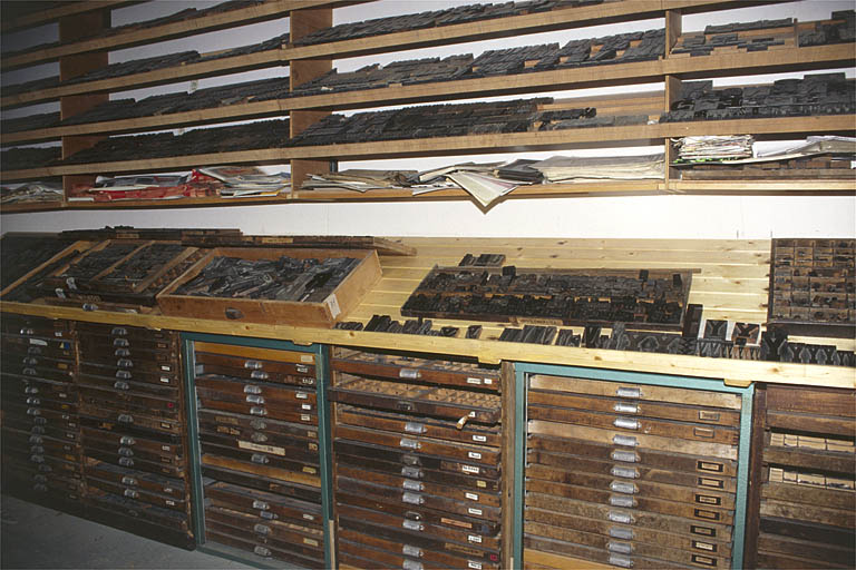 POP | Plateforme ouverte du patrimoinemeubles professionnels d'imprimeur (rangs à pupitre), étagères