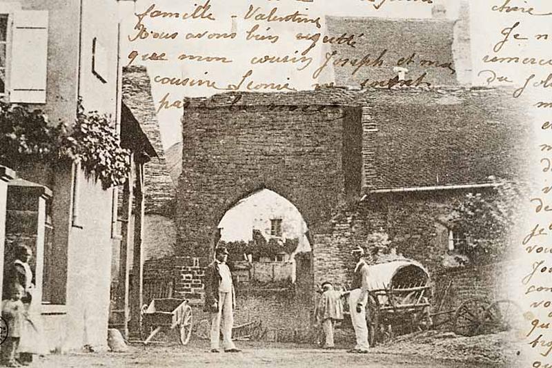 Recadrage de la carte postale précédente [Doc. 02 : Rougemont. Porte Fourquée (XIe siècle), démolie en 1868. Extérieur].