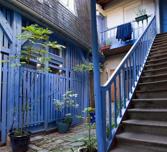 Vue d'ensemble des bûchers, depuis l'entrée de la courette.