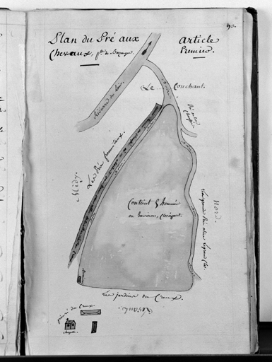 'Plan du pré aux Chevaux', plan sommaire de l'ancien prieuré de Creux.