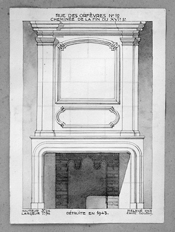 Relevé de la cheminée du 12, rue des Orfèvres, détruite en 1943. Dessin signé Emile Boutin. (Musée Vendéen, Fontenay-le-Comte).