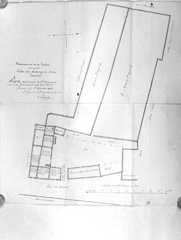 'Plan de la maison de Sainte Marguerite...', rue Kléber, dressé au 1/200e par Salomon, ingénieur ordinaire des Ponts et Chaussées, le 1er décembre 1824, en vue de son acquisition par la ville. (A.C. Fontenay-le-Comte, 1 M 4).