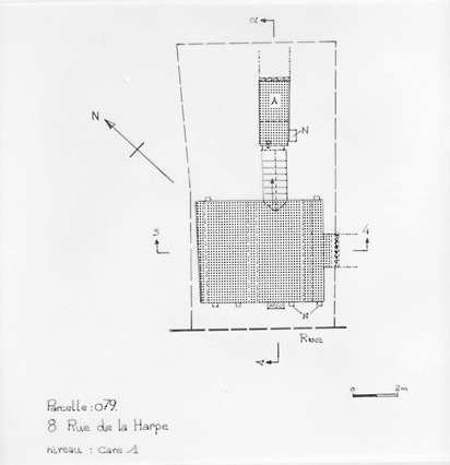 Plan du sous-sol du 8, rue de la Harpe, au 1/100e, par Géraldine Métayer, en 1995.