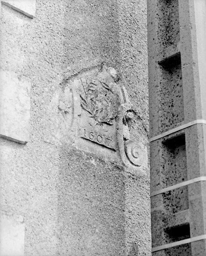 Motif sculpté daté 1607 remployé sur la façade de la maison 24, rue Robert-Bonnaud
