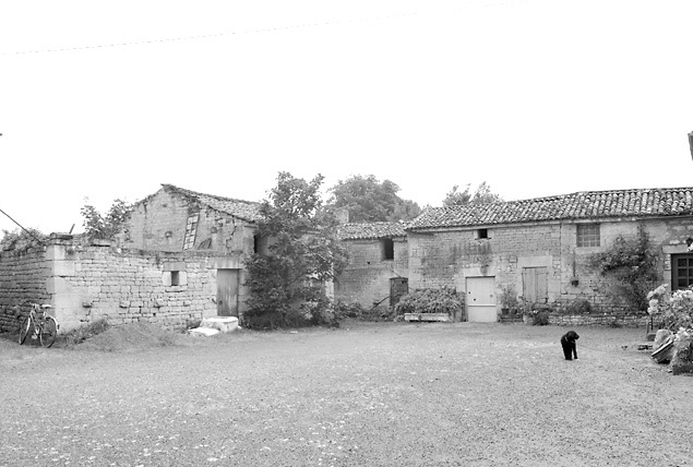 Bâtiments autour de la cour arrière des 25 et 27 rue du Gué-Migné, au hameau de la Folie. Vue prise du nord.