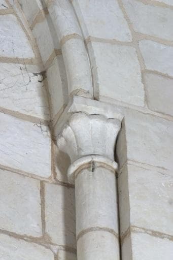 Chapelle Saint-Eloi. Nef, première travée, baie nord, chapiteau de colonnette.