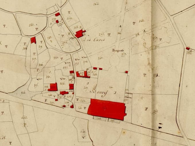 Le château en 1809 ; Le village sur le cadastre de 1809 ; L'enclos paroissial sur le cadastre de 1809