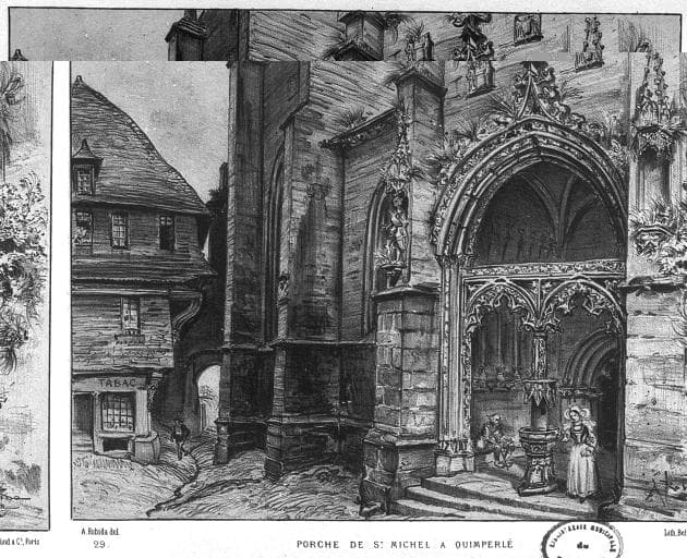 Porche nord. Lithographie de Belfond, d'après un dessin d'Albert Robida (Dans : La vieille France. Bretagne, 1891)