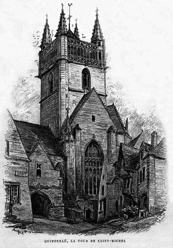 Elévation sud. Lithographie de Belfond, d'après un dessin d'Albert Robida (Dans : La vieille France. Bretagne, 1891)