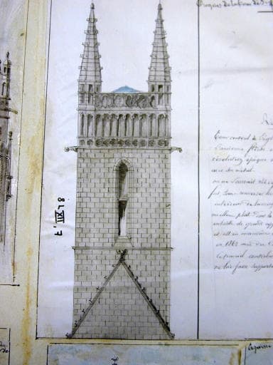 Dessin de la tour par Joseph Bigot, vers 1862 (A.E. Quimper, Fonds Bigot, 8 L)