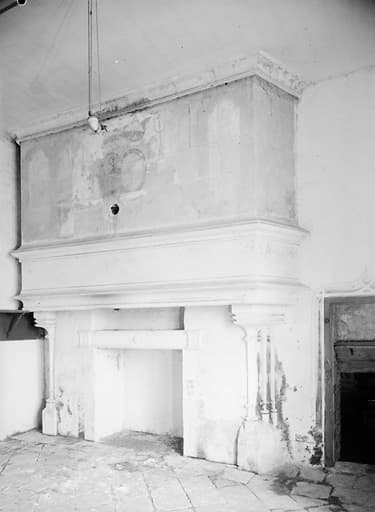 Logis, rez-de-chaussée corps de bâtiment, 2ème pièce, (cuisine), cheminée.