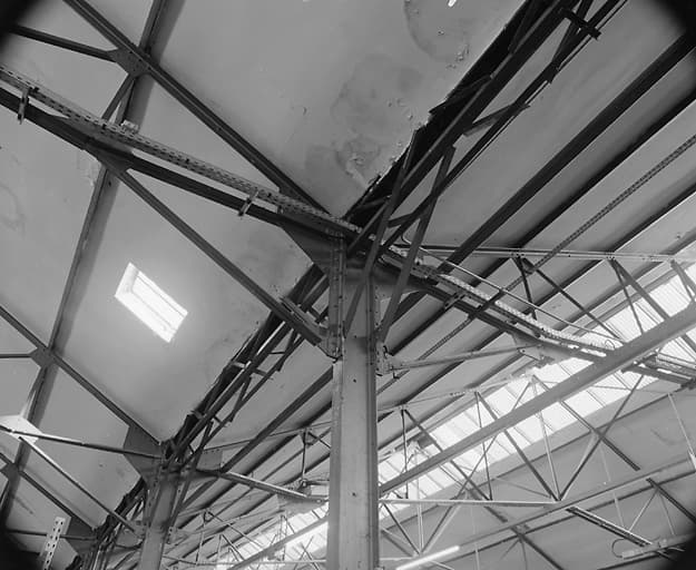 Bâtiment de mécanique Rocher, 1940, détail du toit.