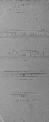 Projet de 1828, par Antoine Brossard. Coupes et élévations.