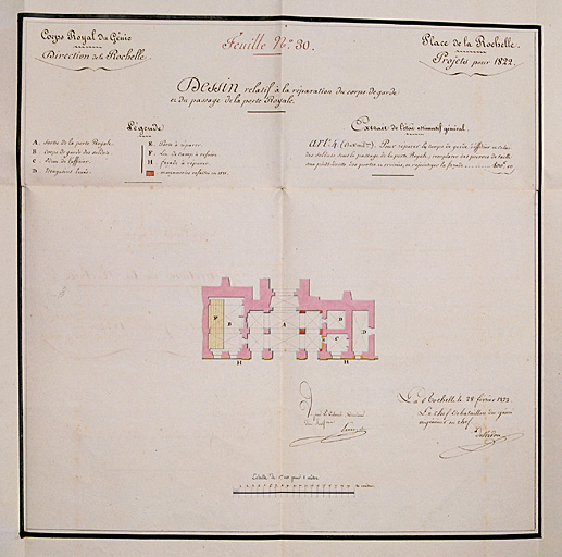 Plan de restauration du corps de garde et du passage, 1821. Emy, De Verdon.