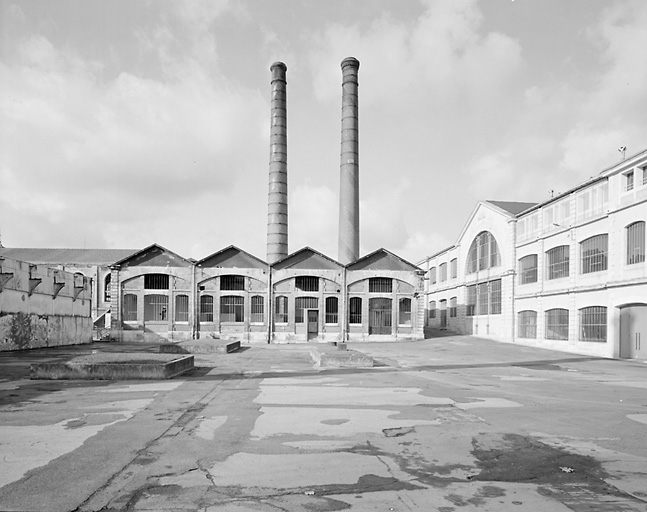 Les cheminées jumelles et le bâtiment 199, atelier de production d'énergie.