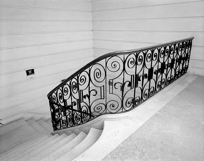 Aile droite, escalier vu depuis le premier étage, vers le bas.