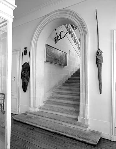 Corps de bâtiment accolé au nord de l'aile gauche, escalier vu depuis le rez-de-chaussée.