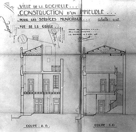 Annexe, au nord de la rue de la Grille, projet de construction de 1938, par Grizet, coupes.
