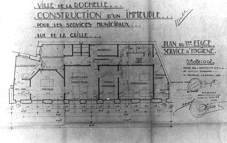 Annexe, au nord de la rue de la Grille, projet de construction de 1938, par Grizet, plan du 1er étage.