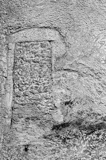 Logis, tour nord, élévation ouest, premier étage : détail de la porte murée menant jadis à la chapelle.