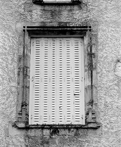 Logis, élévation sud-ouest, fenêtre en remploi (provenant d'une maison de Chenay).