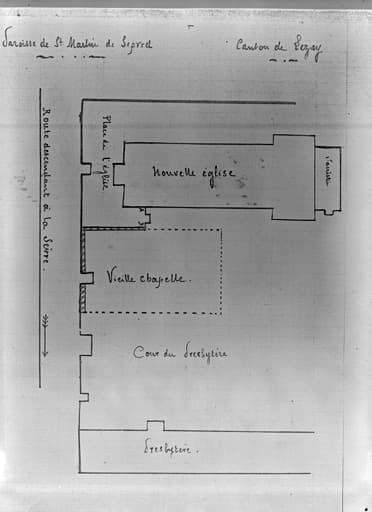 Plan schématique de la nouvelle église et de la vieille chapelle vers 1905 par Léopold Bonnet, curé.