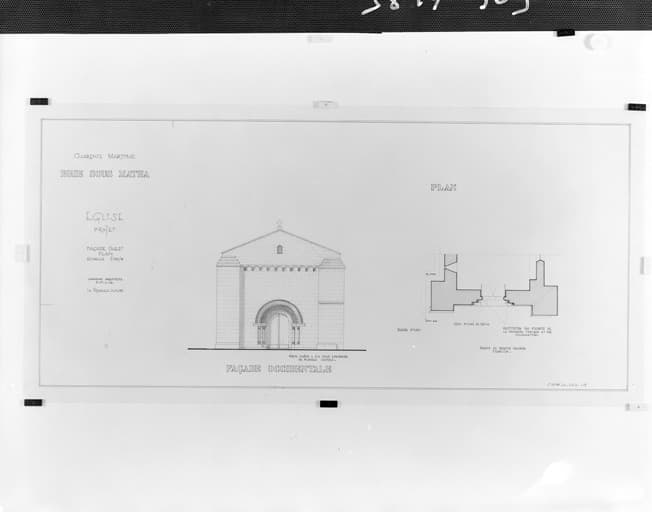 Projet pour la façade. Elévation et plan, par V. Danguin, en 1992.