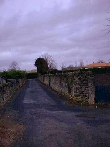 Vue d'un chemin du village bordé de murs, vue prise du sud-ouest vers le nord-est.