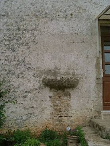 Logis de la seconde moitié du 19e siècle, élévation antérieure, détail de la pierre d'évier, vue prise du sud.