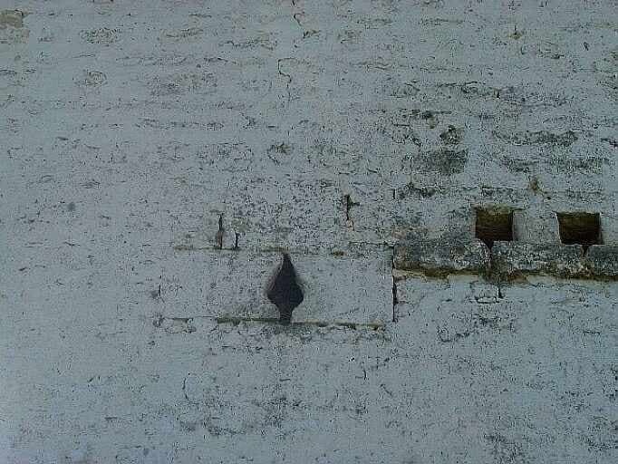 Logis, élévation antérieure, détail de l'archère canonnière située au niveau du comble à surcroît.