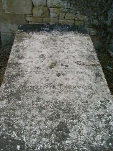 Cimetière privé de la famille de Clervault, dalle du Comte Louis-Auguste / de Clervaux / né le 10 juillet 1857 / décédé le 7 mars 1930 / Comtesse de Clervaux / née d'Adhémar / le 22 avril 1858 / décédée le 8 juillet 1947.
