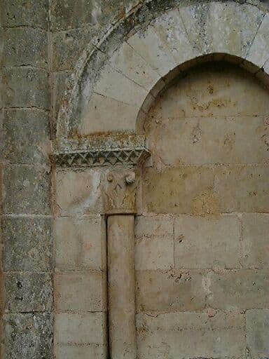Chevet, arcature de gauche au sud-est, détail du chapiteau de gauche.