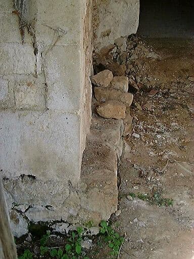 Logis, élévation antérieure est, avant-corps, détail de la semelle de gauche.