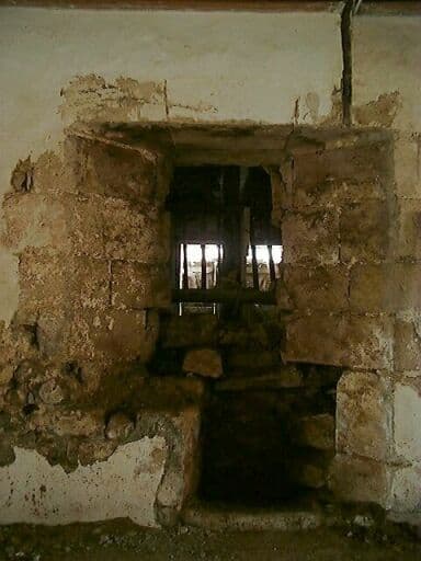 Logis principal, intérieur, rez-de-chaussée, mur nord, vestiges de la fenêtre à coussiège donnant sur l'écurie.