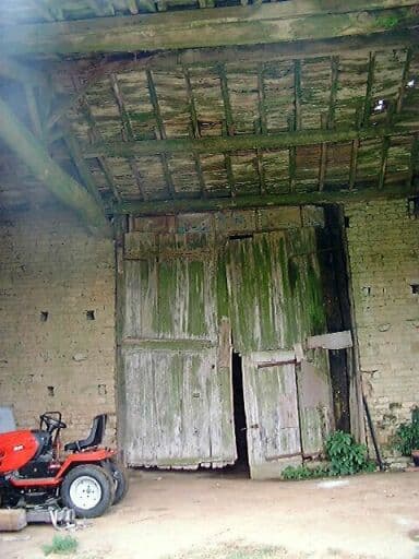 Dépendances, hangar accolé au bâtiment logement-grange, porte d'accès à la grange sous le hangar.