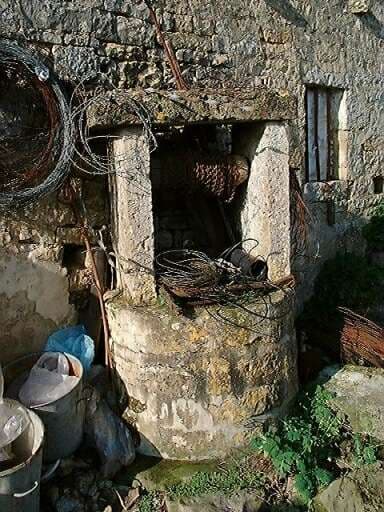 Dépendances, écuries et logement d'ouvrier agricole, élévation antérieure sur cour, vue du puits installé au centre de cette élévation.