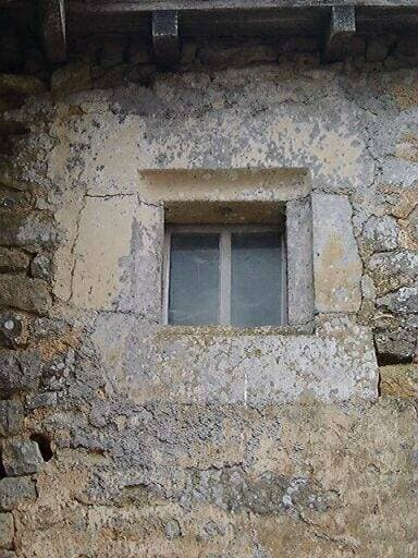 Logis, élévation postérieure, partie gauche, proche de la cave (ancienne tour ?), détail d'une baie de comble chanfreinée.
