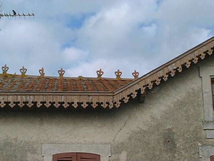 Elévation antérieure, détail de la crête faîtière.