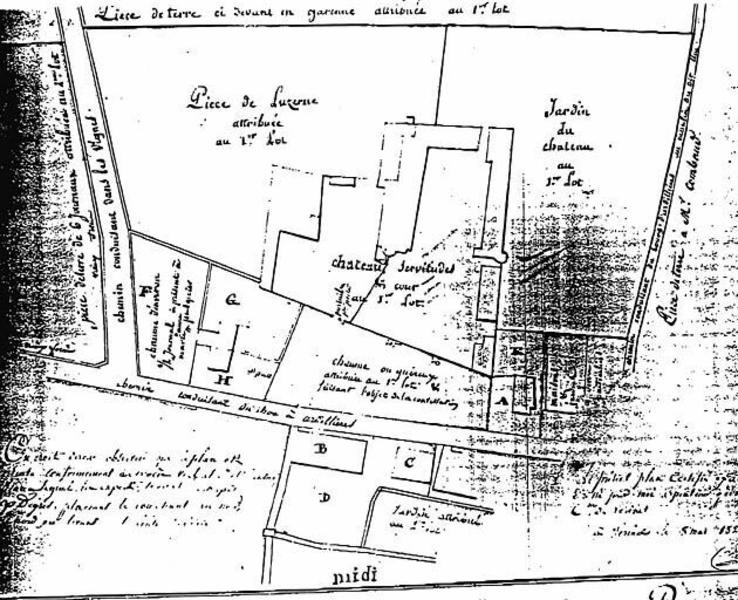 Plan d'une partie des domaines formant les 1er et 2e lots du procès-verbal d'allotement et d'estimation des biens de Froges de L'Aiguille aîné, migré, du 20 frimaire an 2.
