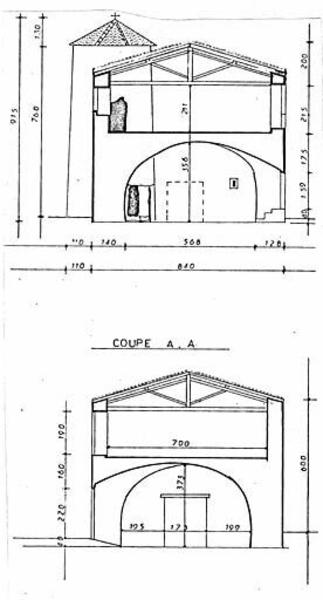 Coupes sur les anciens chais au sud, projet de restauration par J. Catherinot, architecte à La Rochelle