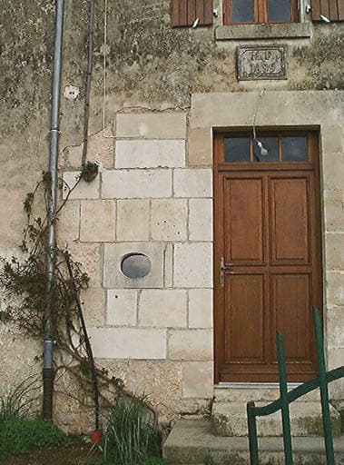 Logis, élévation antérieure, détail de la reprise d'appareil incluant l'encadrement de la porte.